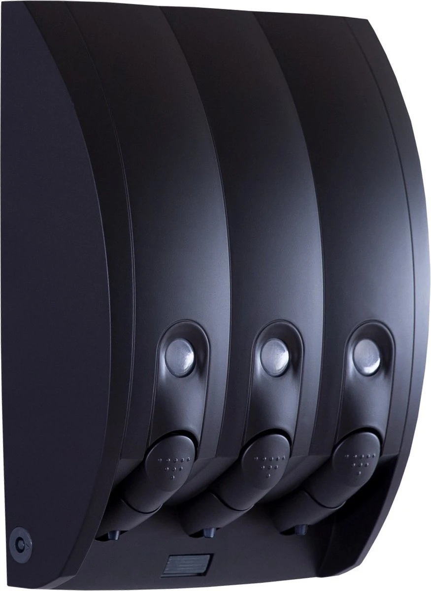 Deze zeepdispenser met 3 kamers / reservoirs zorgt voor een opgeruimde badkamer. Degelijk, modern en gemaakt van kunststof. Een genot om in je badkamer te hebben.