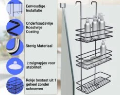 Het Doucherekje bestaat uit 1 geheel, je hoeft geen mandjes vast te schroeven die na verloop van tijd gaan los zitten. Afmetingen (H x B x D): 52 x 25 x 11 cm