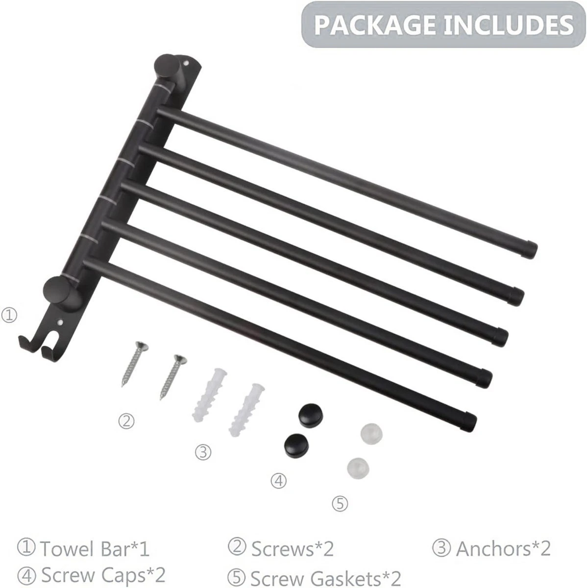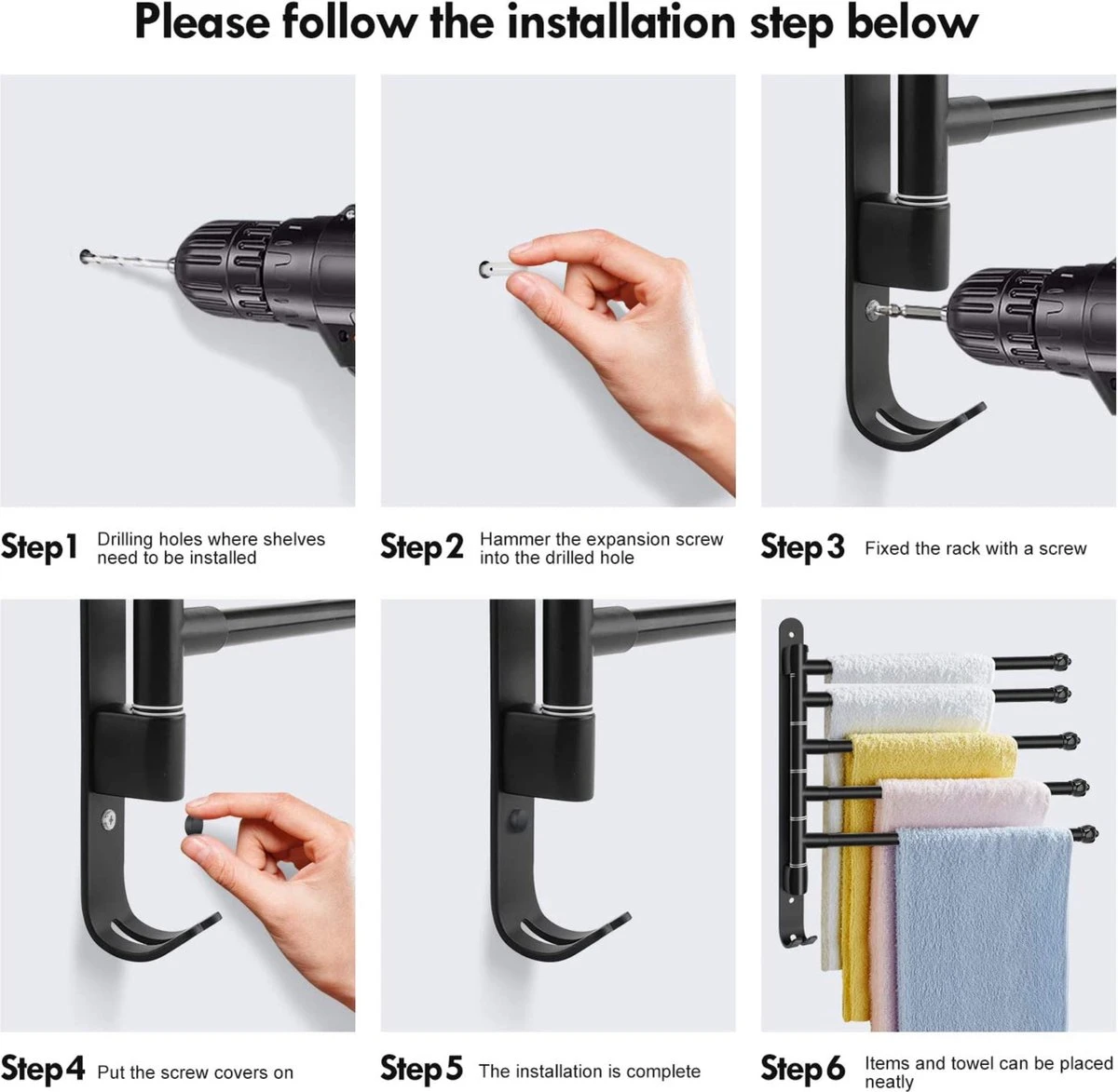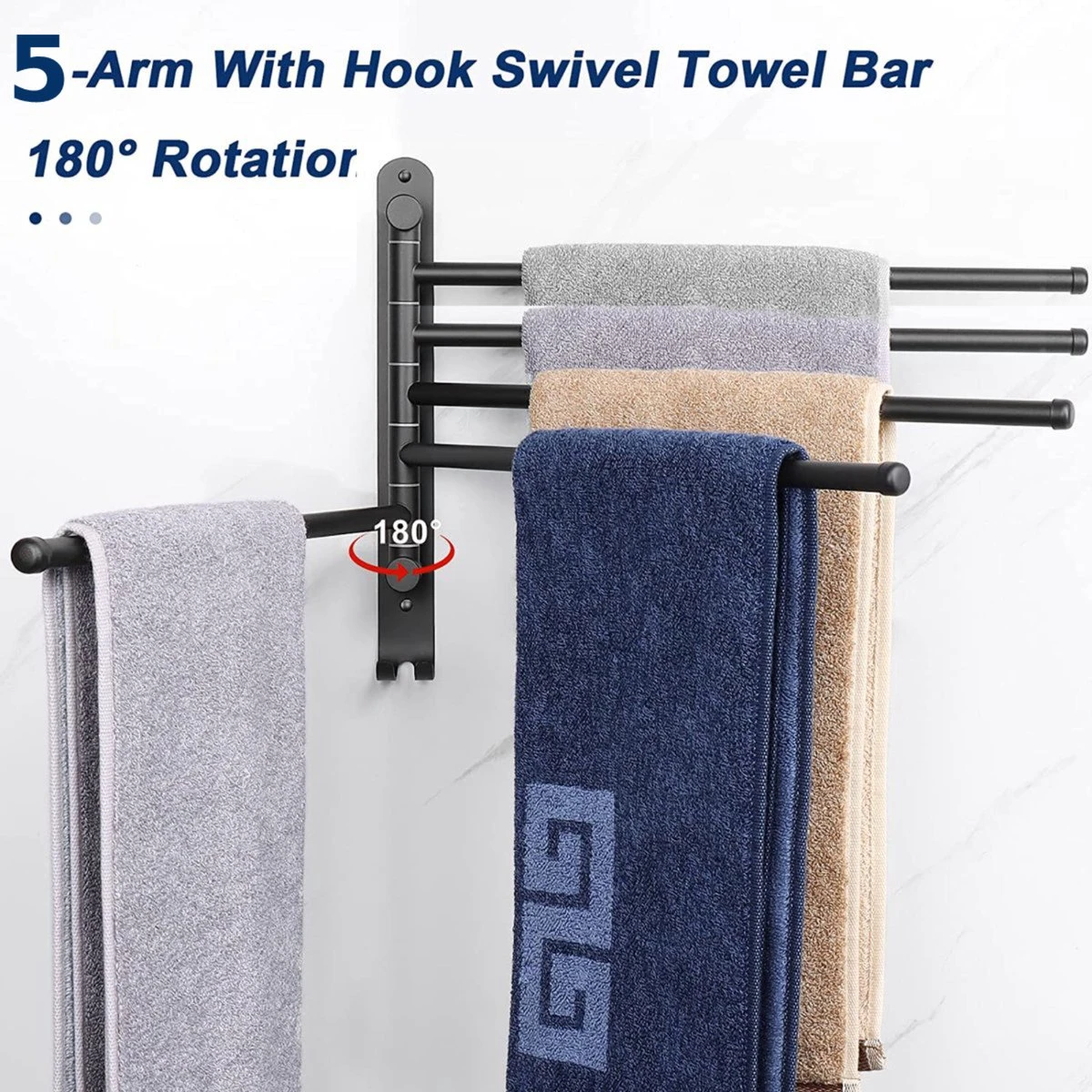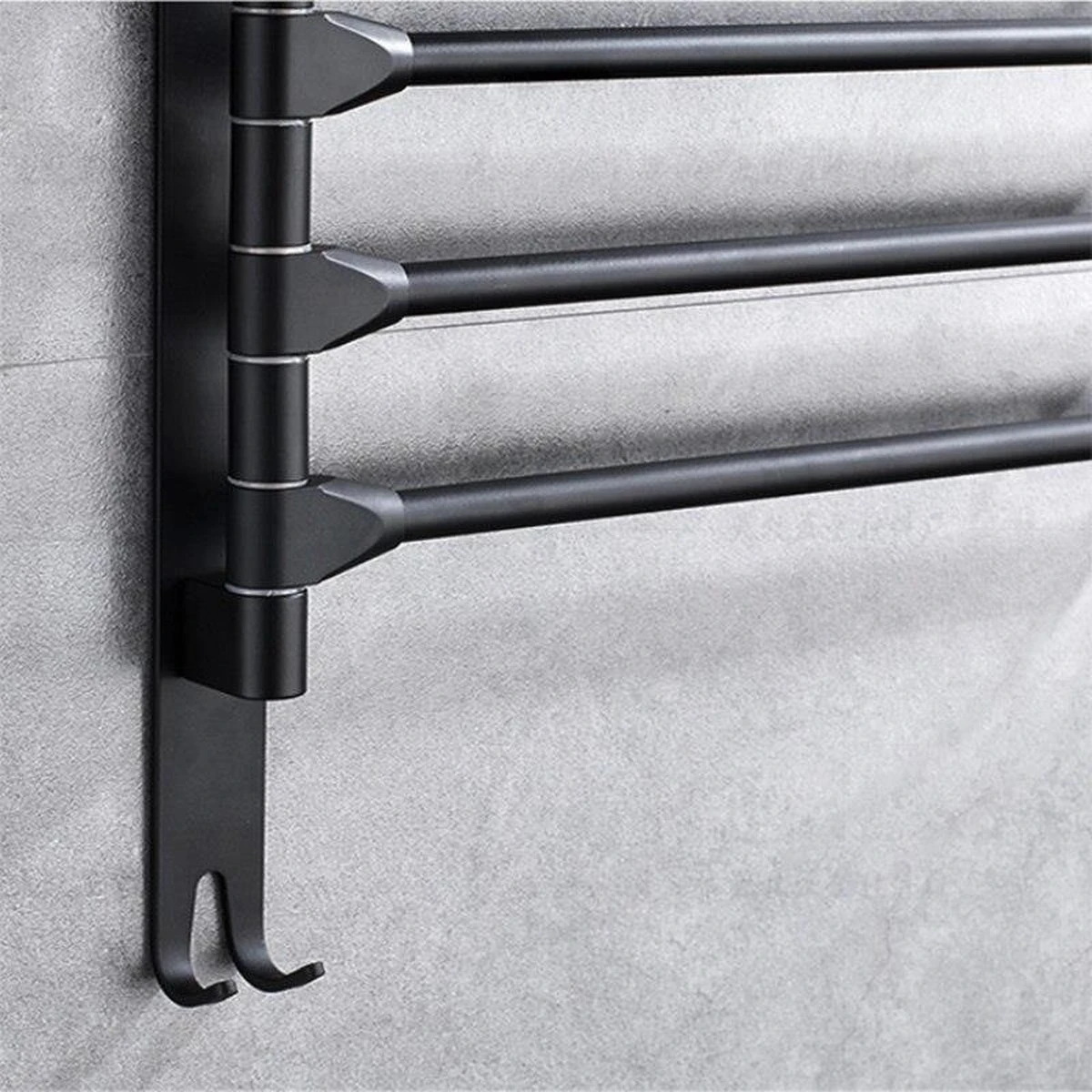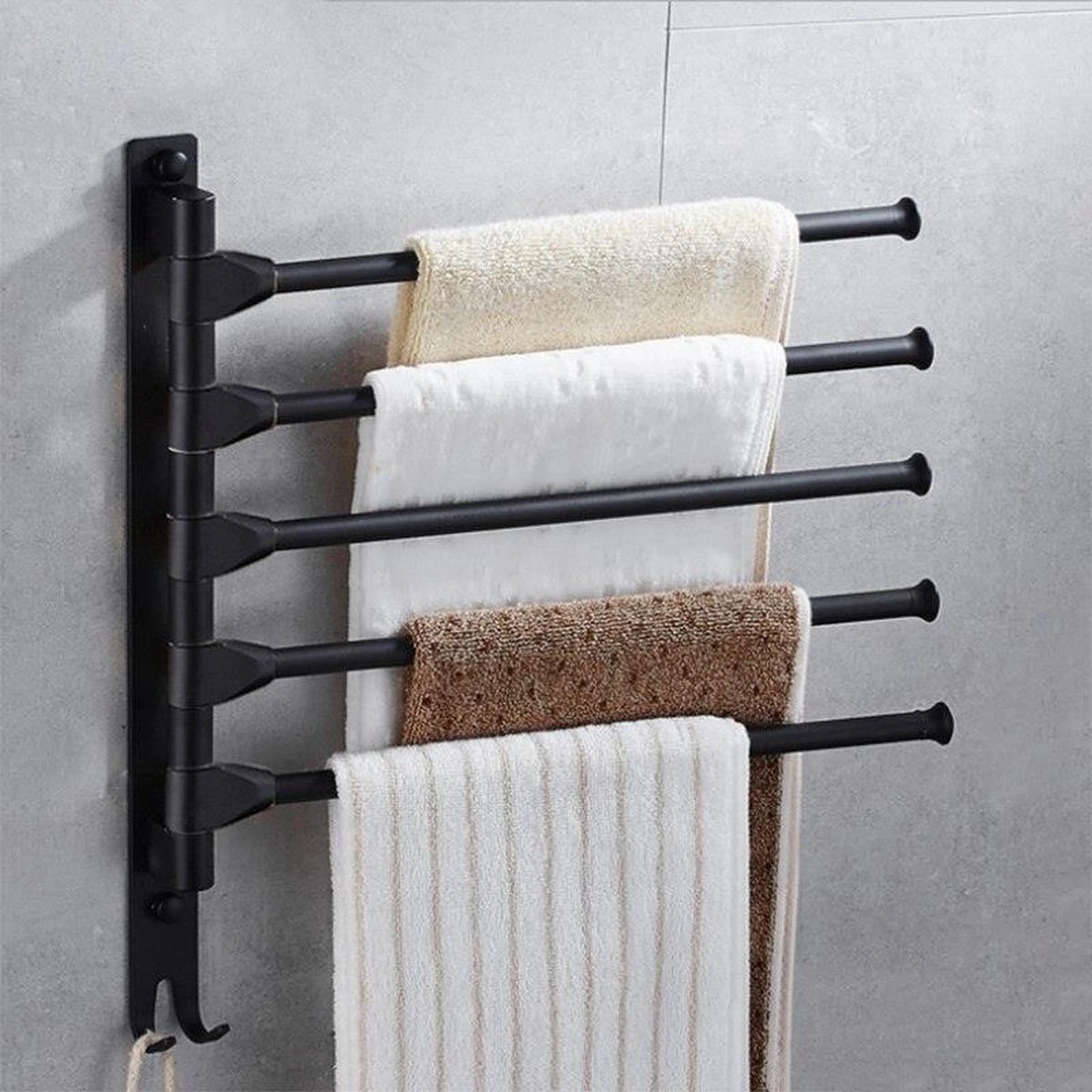 Draait 180°- Met meerdere draaibare armen kunt u de gewenste armen uitspreiden voor gemakkelijk drogen, en ze terug tegen de muur draaien om ruimte te besparen.