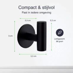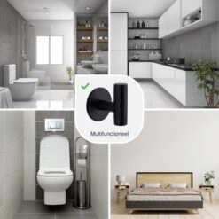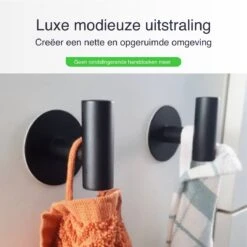 Handdoeken, theedoeken, vaatdoeken, als je ze gebruikt moeten ze droog en schoon zijn. Met deze handige ophanghaken, die je dankzij de sterke plakstrip makkelijk op een muur of kastje kunt plakken, heb je altijd een plekje om je doeken op te hangen. De zelfklevende haakjes zijn gemaakt van RVS, zwart van kleur en eenvoudig te monteren. Je hoeft er namelijk niet voor te boren. Een must have voor je badkamer of keuken.
