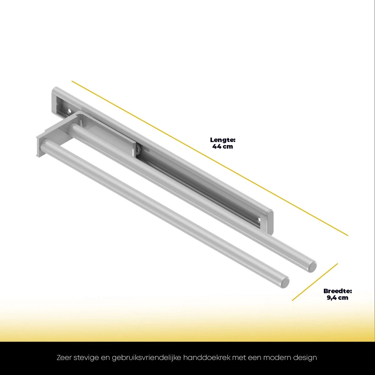 Dit uittrekbare, luxe handdoekrek van Eleganca is een must-have om jouw badkamer en/of keuken stijlvol en geordend in te richten.