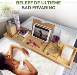 Geniet meer van je welverdiende rustmoment in bad met de luxe badplank van Krexs. Kom helemaal tot rust in een warm bad met een lekker wijntje, een goed boek of je favoriete Netflix-serie. Geschikt voor ieder bad en gemaakt van milieuvriendelijk bamboe, dit is het ideale product om even helemaal te ontspannen.