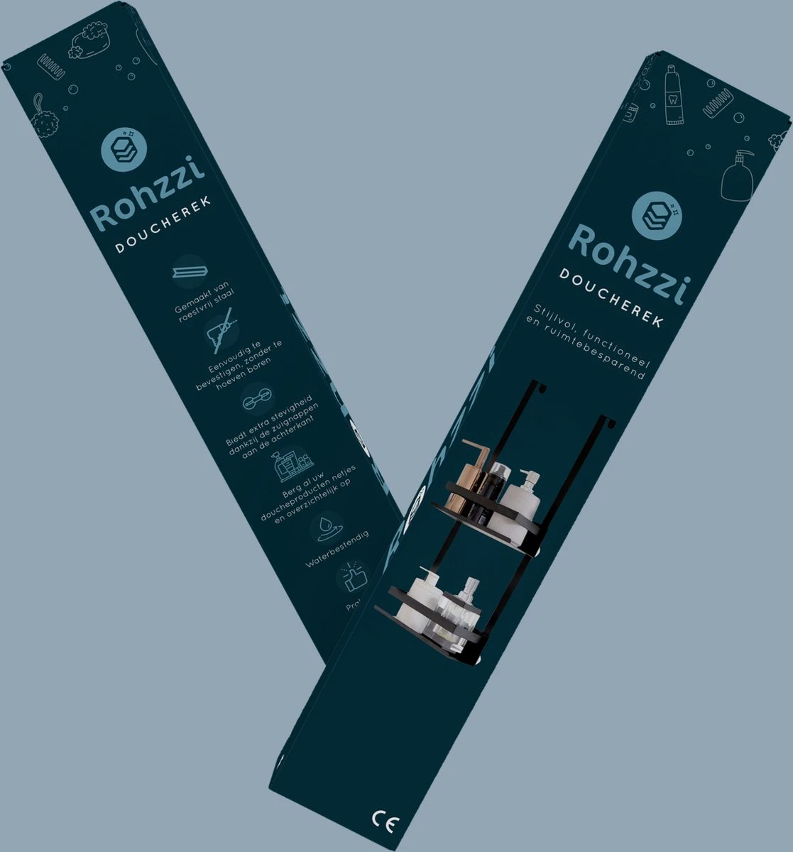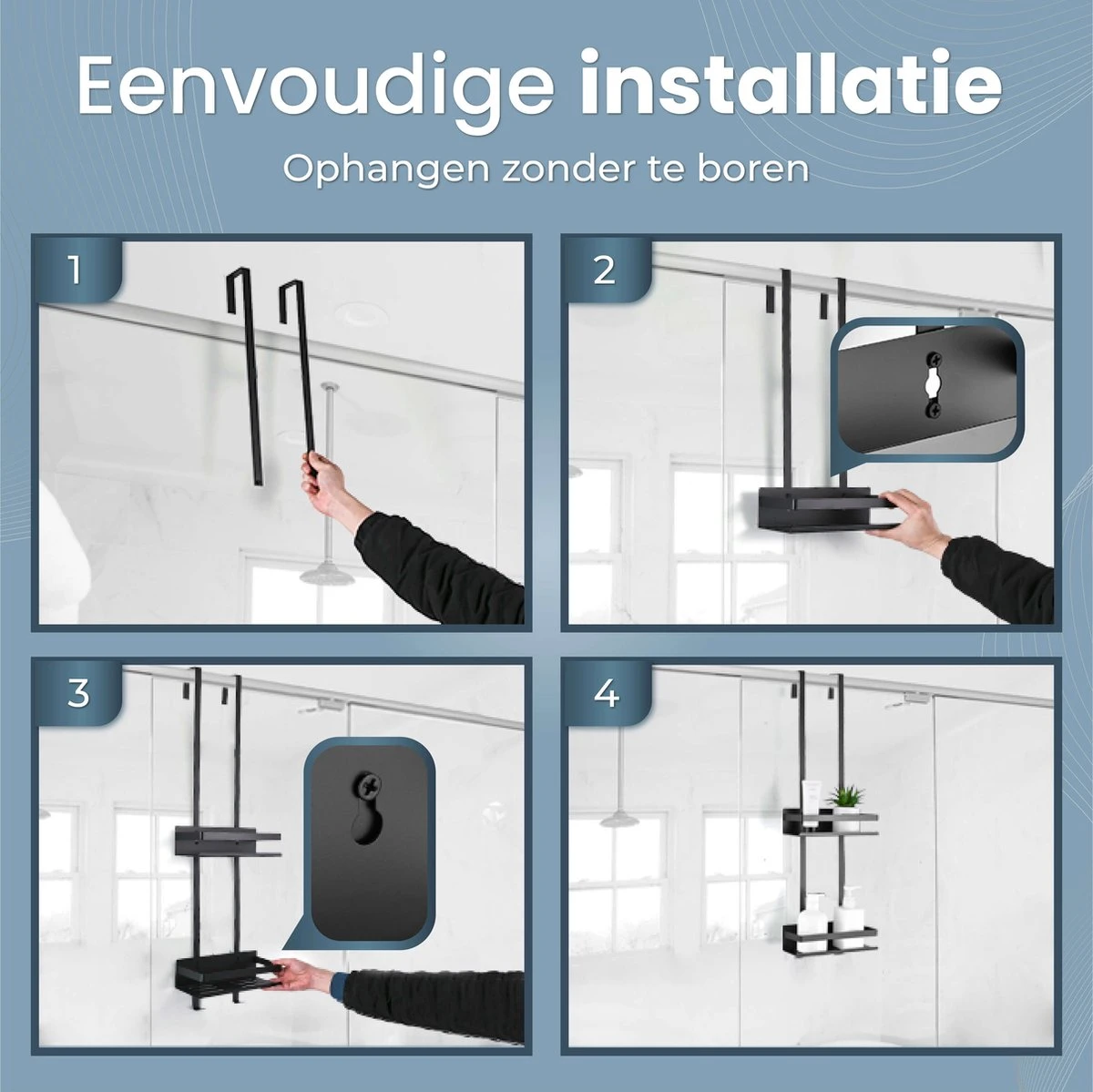 Merkloos Doucherek Zonder Boren Zwart – 30 Dagen Uitproberen -Doucherek Hangend – Badkamer Accessoires – RVS – 2 Laags