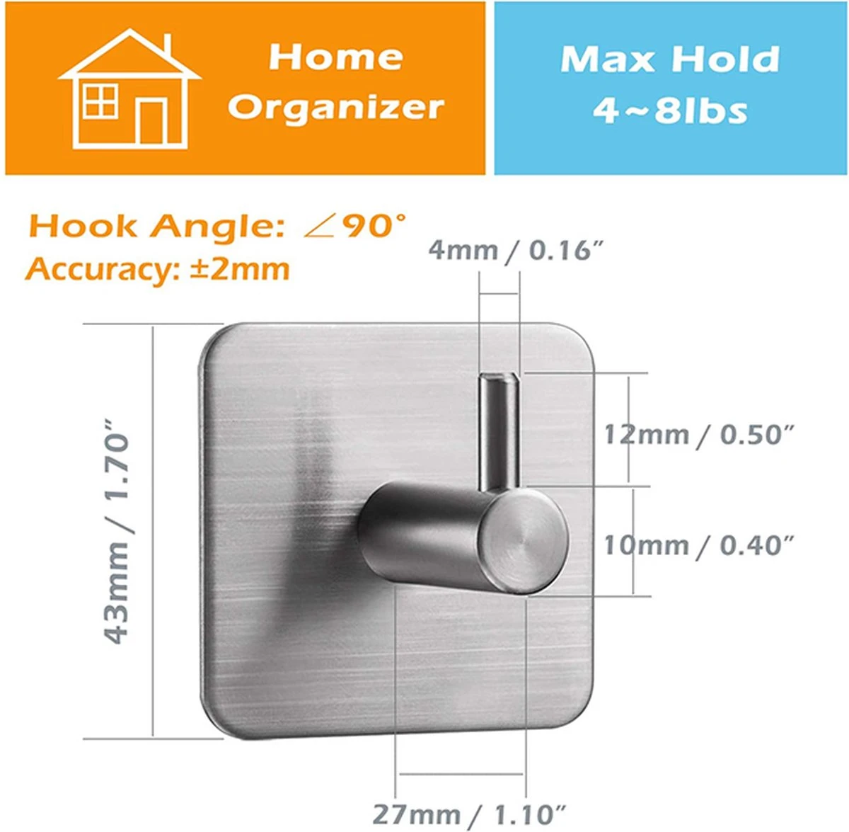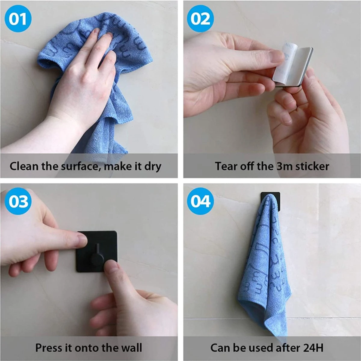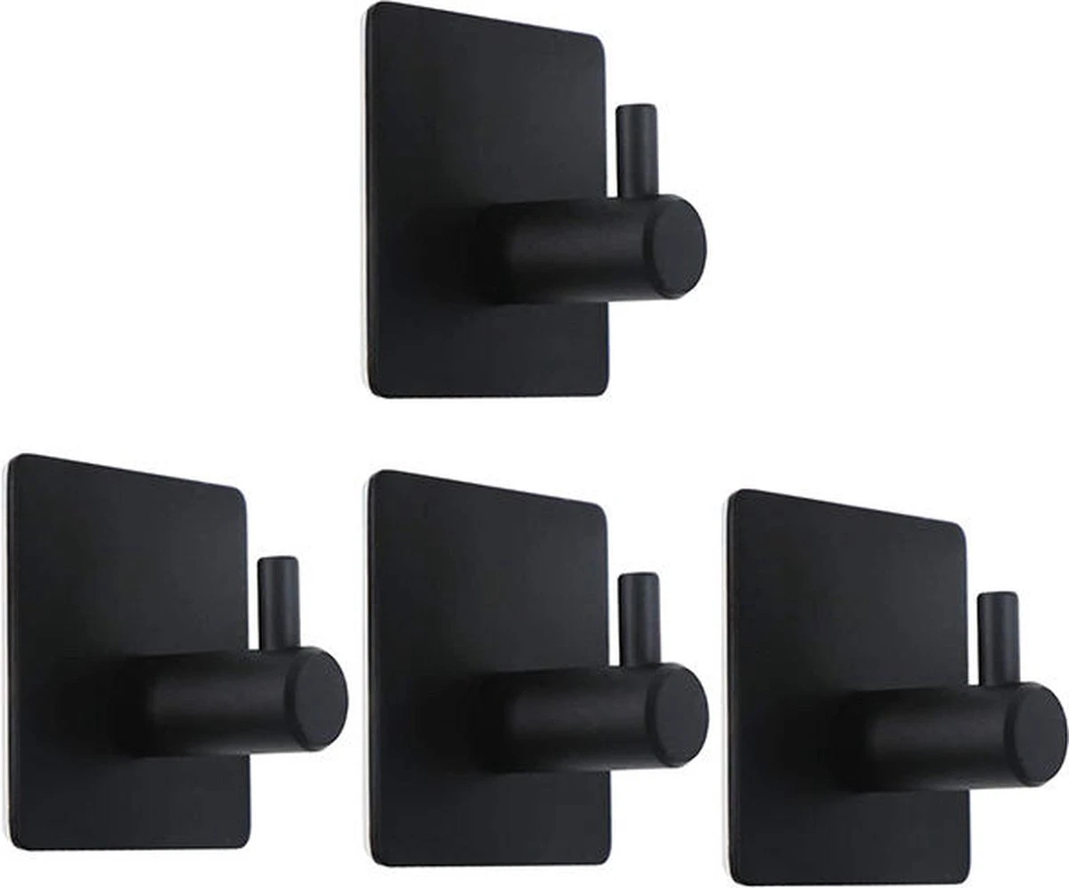 Merkloos Roestvrijstalen Handdoekhaakjes | 3M™ Zelfklevend | 4 Stuks | Mat Zwart | Wandhaak | Ophanghaken | Plakhaakjes | Haakjes | Badkamer | Keuken | RVS