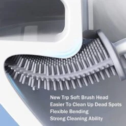 Flexibele siliconen platte puntige borstel kan de rand van het toilet beter reinigen door de borstelkop in verschillende hoeken te buigen. Voor doodlopende wegen, uitgerust met een gebruiksvriendelijkere reinigingsborstel