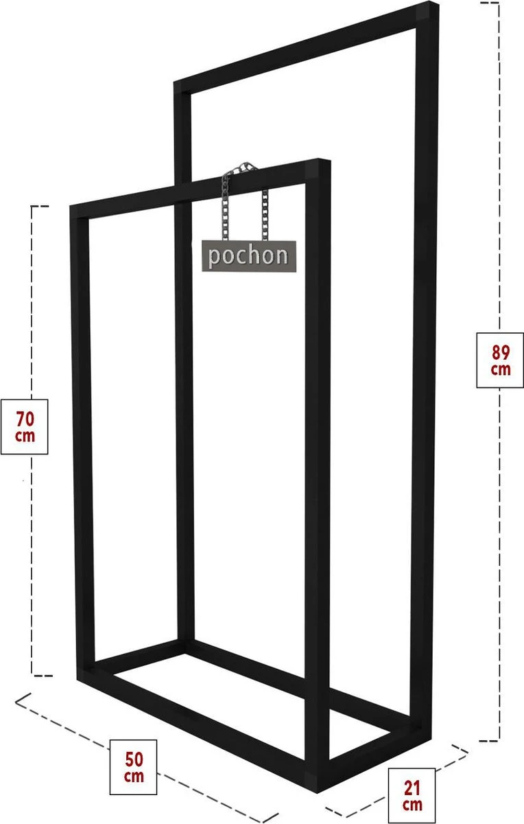 De Pochon Home Handdoekrek is gemaakt van hoogwaardig matzwart metaal, waardoor het niet alleen stijlvol is, maar ook duurzaam en weerbestendig. Het metaal is bestand tegen roest en verkleuring, zodat u jarenlang plezier kunt hebben van uw handdoekrek. Bovendien is het metaal eenvoudig schoon te maken en te onderhouden. De keuze voor metaal maakt deze handdoekhouder ook een stijlvolle aanvulling op elke badkamer of keuken, ongeacht de stijl van de ruimte.