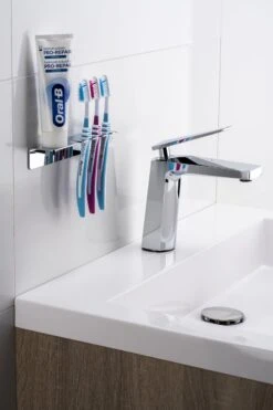 In de sanitair wereld zijn vandaag de dag nog maar weinig innovaties. Maar de Sagittarius One 40S1 Tandenborstelhouder is daar een uitzondering op! Met een strak en simpel design kunt u nu uw tandenborstels en opzetstukken van uw elektrische tandenborstel gemakkelijk opbergen. Ook is dit veel hygiënischer dan de traditionele tandenborstelbekers waar vaak schimmels in groeien en bacteriën zich ophopen. Met onze tandenborstelhouder heeft u daar geen last meer van!