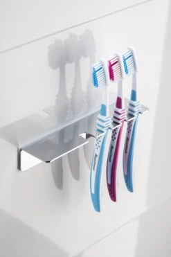 UITSTEKEND VOOR HYGIËNE – In tandenborstelbekers groeit door vocht vaak schimmel en krijgt u last van bacteriën. Door ons ophangsysteem heeft u daar geen last meer van!
