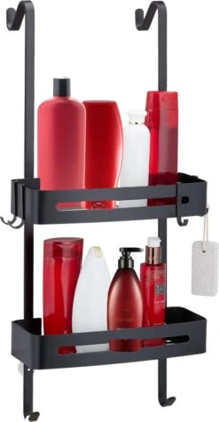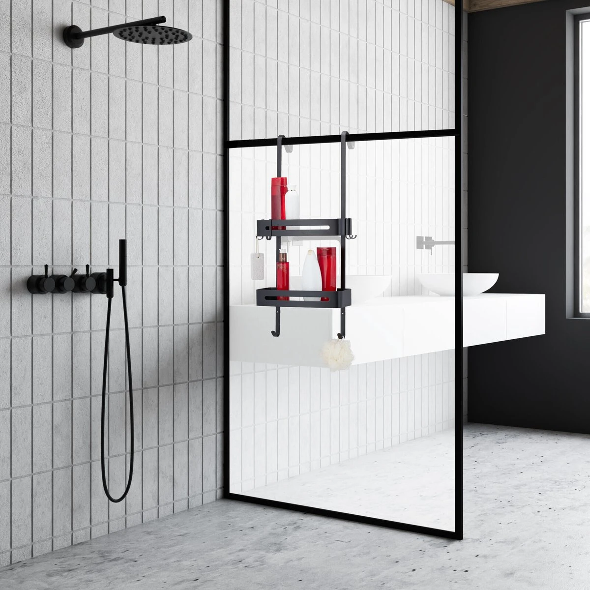 SIAFOSS Doucherek Zonder Boren Doucherek Hangend – 100% Stevig – 100% RVS – Hangend Badkamerrekje – Doucherek Aan Douchewand – Badkamer Accessoires – RVS Zwart – 2 Laags – Douchemand