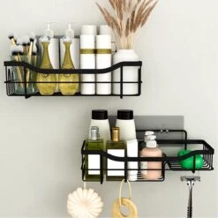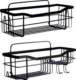 De rekjes komen in twee verschillende formaten. Je hebt natuurlijk de keuze beiden in de badkamer te hangen voor alle shampoos en conditioners, maar ze zijn ook ideaal voor je kruiden collectie in de keuken, voor de geurstokjes in het toilet of zelfs in de kinderkamer voor de pluizige vriendjes van je zoon of dochter. Je kunt het zelf zo gek of normaal maken als je wilt! Je vindt overigens ook nog 3 losse ophanghaken in de verpakking.