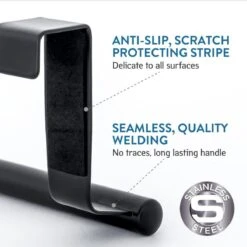 Tatkraft HORIZON – RVS Kastdeur Handdoekrek – Keukenkast Deur Handdoek/Vaatdoek Houder Rek Stang Hanger – Towel Rack Kast Deurhanger Deurhaak Keuken – Handdoekstang – Mat Zwart – 23CM
