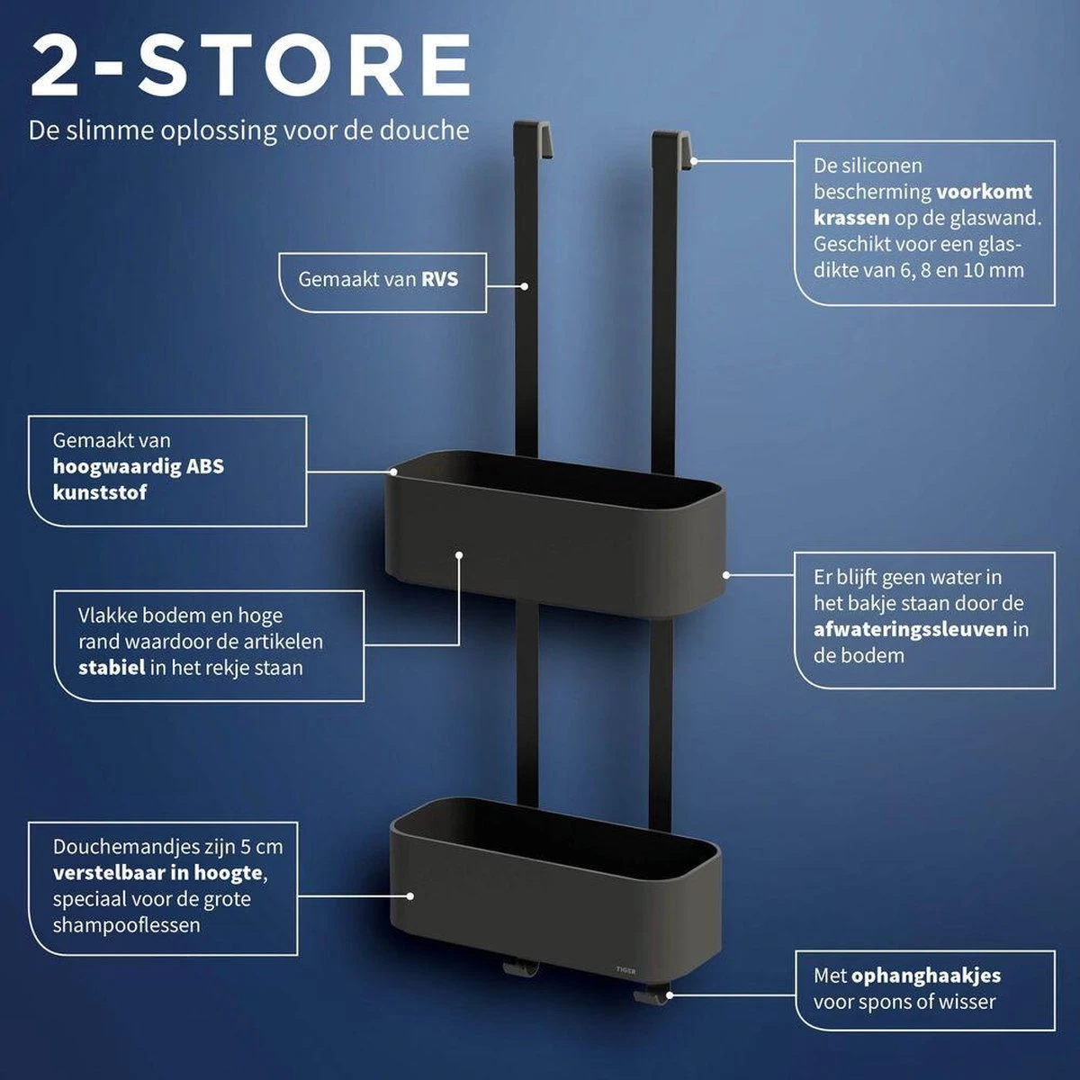 • Op en neer: pas de hoogte van de douchemandjes eenvoudig aan, zo berg je met gemak ook de grotere flessen op (max 5 cm verstelbaar)