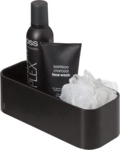 Schuif het bakje op het muurplaatje en je kunt altijd afwisselen. Het wandbakje is gemaakt van kunststof en kan dus niet roesten. Door de waterafloop onderin kun je het bakje gemakkelijk schoonhouden zodat het douchemandje jarenlang mooi blijft. De zwarte kleur geeft een stoere twist aan je badkamer en is makkelijk te combineren met andere accessoires.