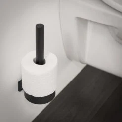 De reserverolhouder uit de Tiger Bold serie is uitgevoerd in de kleur mat zwart en biedt plaats aan twee rollen toiletpapier. Met dit accessoire zijn extra rollen toiletpapier op fraaie wijze op te bergen nabij het toilet zodat er altijd voldoende toiletpapier beschikbaar is. De bijgeleverde bevestigingsmaterialen zijn na montage van de reserverolhouder over het muurplaatje niet meer zichtbaar. De Bold serie bevat naast deze reserverolhouder een groot aantal aanvullende accessoires voor de badkamer of het toilet. Dit artikel is ook geschikt voor TigerFix type 2, waarmee accessoires snel en eenvoudig op een gladde, harde ondergrond te bevestigen zijn door middel van een gepatenteerd lijmsysteem. Boren is niet noodzakelijk en de accessoires zijn eenvoudig te verwijderen zonder dat er resten op de ondergrond achterblijven. TigerFix is apart verkrijgbaar.