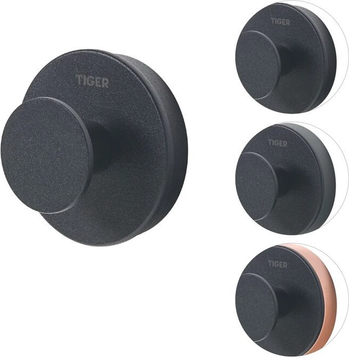 Tiger Urban – Handdoekhaak Groot (1x) – ø 5 Cm – Inclusief 2 Decorringen – Zwart