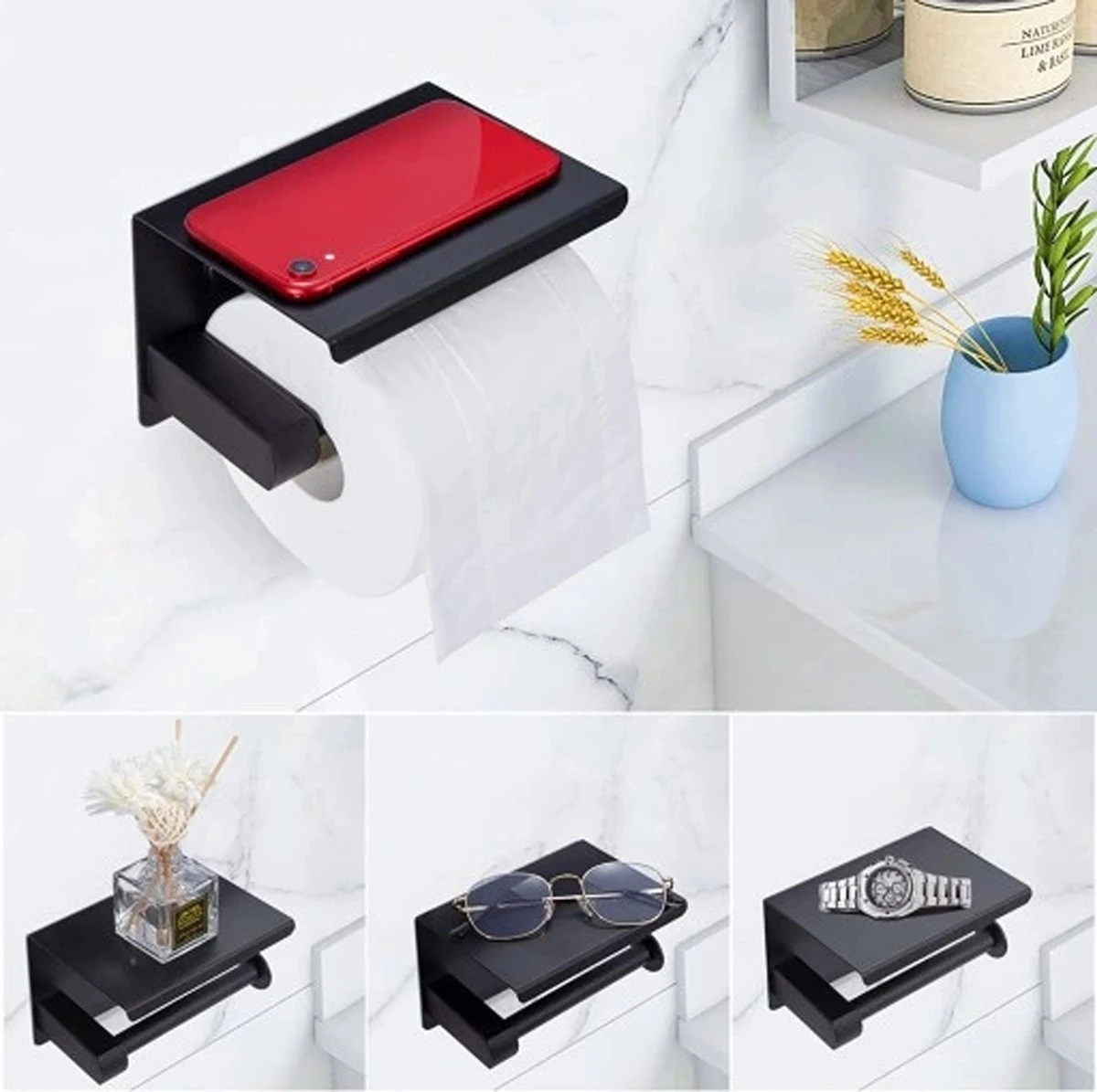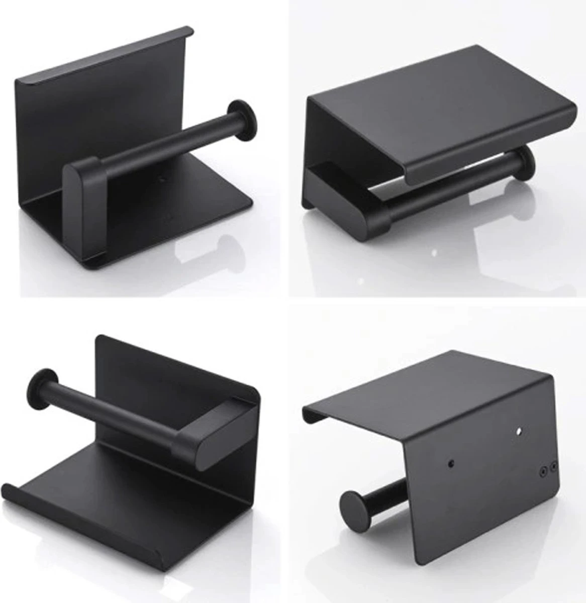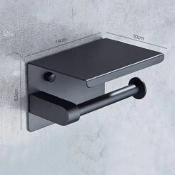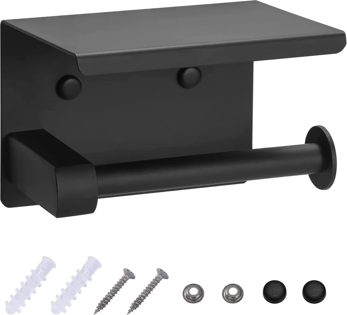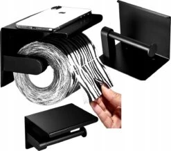 Toiletrolhouder – Wc Rol Houder Met Plankje – Inclusief Haakje – RVS – Waterbestendig – Zwart – Rheme