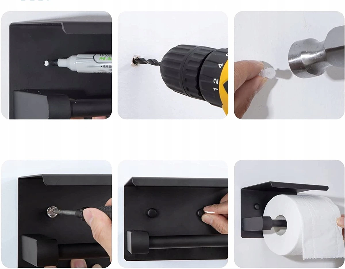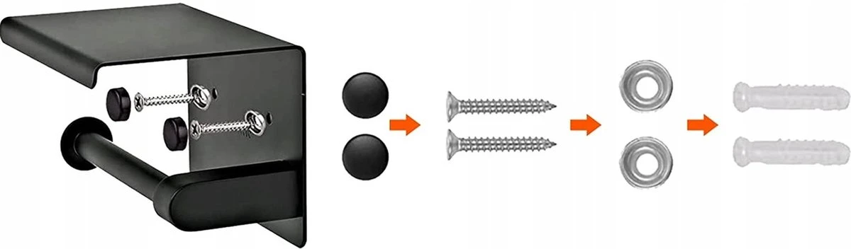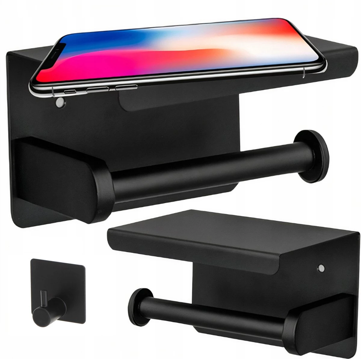 Toiletrolhouder – Wc Rol Houder Met Plankje – Inclusief Haakje – RVS – Waterbestendig – Zwart – Rheme