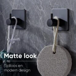 Trendfield Handdoekhaakjes Zelfklevend Zwart – 2 Vierkante Zwarte Handdoek Haakjes – Handdoekhaak – Zwart