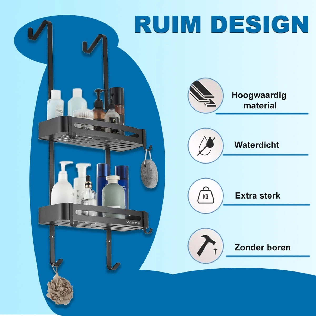 De doucherekken zijn gemaakt van hoogwaardige materialen en kan probleemloos in de douche worden gebruikt. Laat je niet misleiden door het lichte en smaakvolle design, want de doucherekken zijn zeer stevig en hebben een draagkracht van maarliefst 10 kilogram per stuk. Je kan dus zonder problemen al je shampoos, douchegels en conditioners in het rek zetten. Daarnaast komt het doucherek met 2 ophanghaakjes, voor het opbergen van douchewissers, washandjes etc.