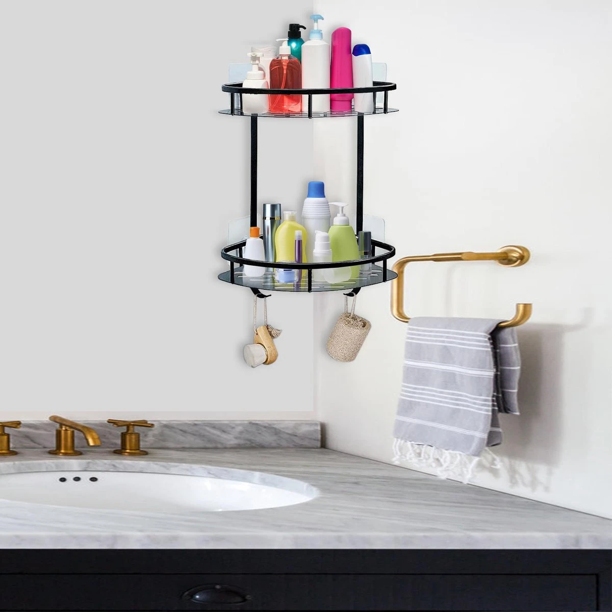 Heb jij 4 shampoos, 3 conditioners, 2 body washes en nog tal andere douchemiddelen? Dan is dit doucherekje nog steeds iets voor jou! Met het twee-laags ontwerp heb je hier bijna altijd genoeg ruimte voor jouw douchegerei. Ook doordat het hangende doucherek een hoek van 90° heeft en in de hoek geplaatst wordt, bespaart hij ruimte in je douche.